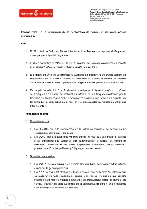 Fa un any, l’Ayuntamiento de Terrassa va iniciar el procés d’incorporació de la perspectiva de gènere als pressupostos municipals.