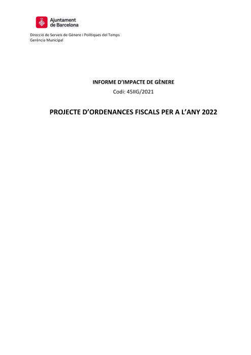 - Temática: Ordenanzas fiscales, Ayuntamiento de Barcelona, Informe de impacto de género